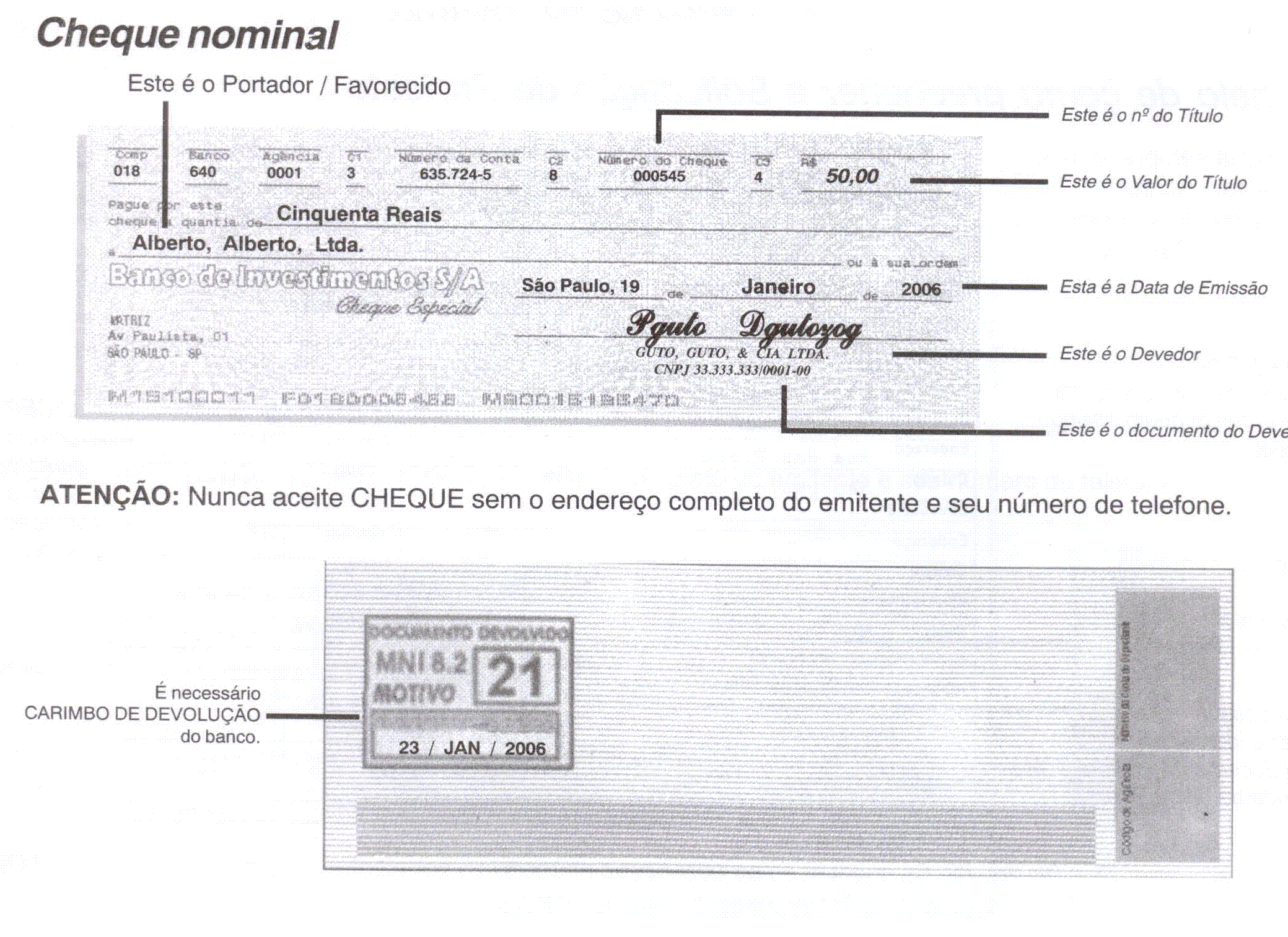 Veja Modelo de Cheque Nominal
