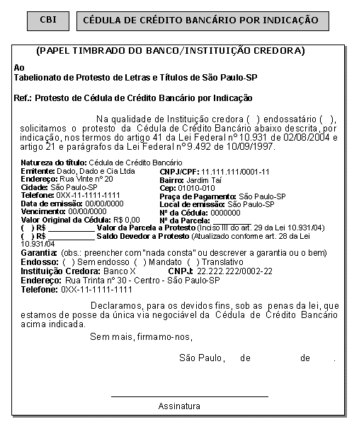 CBI Cédula de Crédito Bancário por Indicação