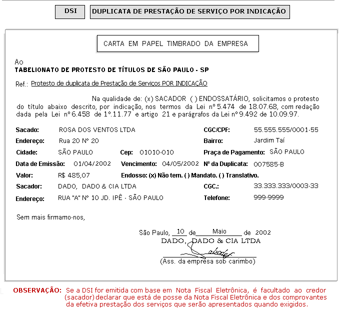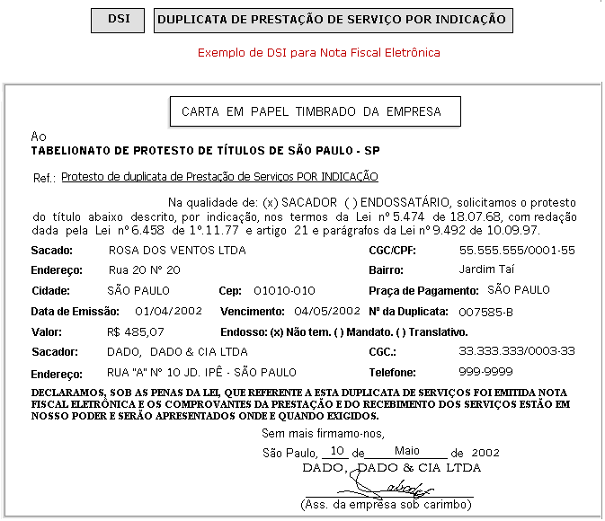 DSI  Duplicata de Prestação de Serviços por Indicação