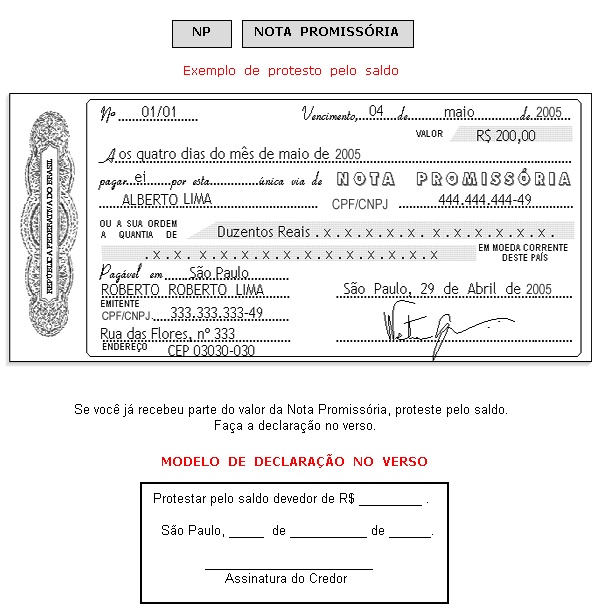 Veja modelo de protesto com valor corrigido